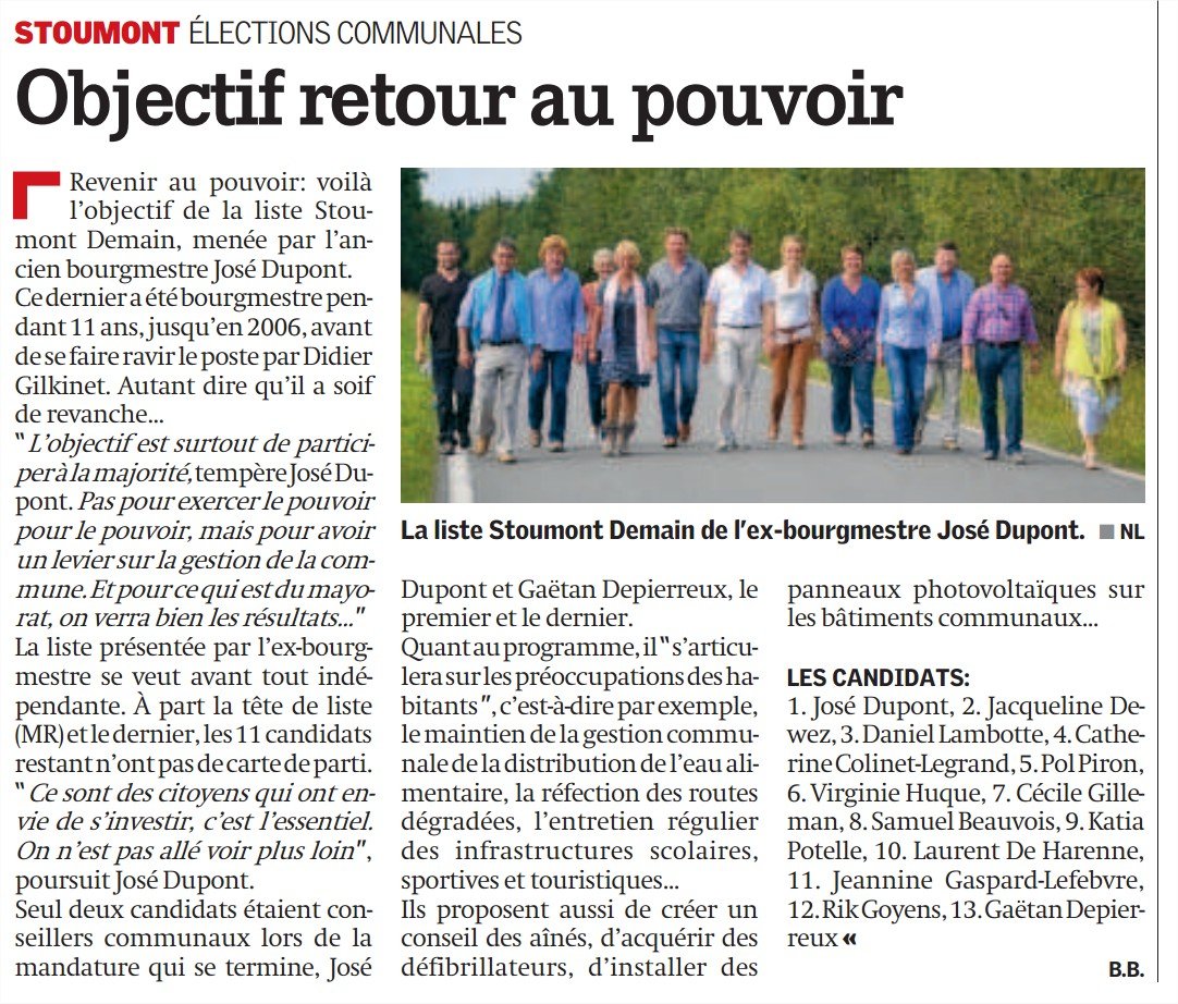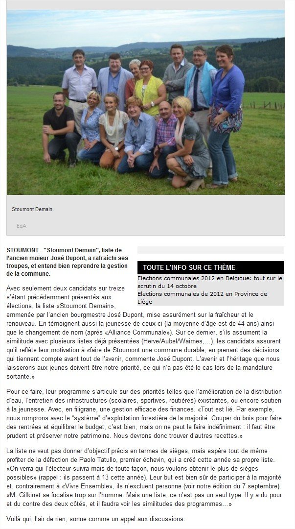 Un an après … Où en sommes-nous ? Un an après … Où en sommes-nous ? Tel était le titre de l’invitation lancée par notre groupe « STOUMONT DEMAIN « , groupe représentatif de la minorité au sein du conseil communal de Stoumont. Une centaine de personnes a répondu...